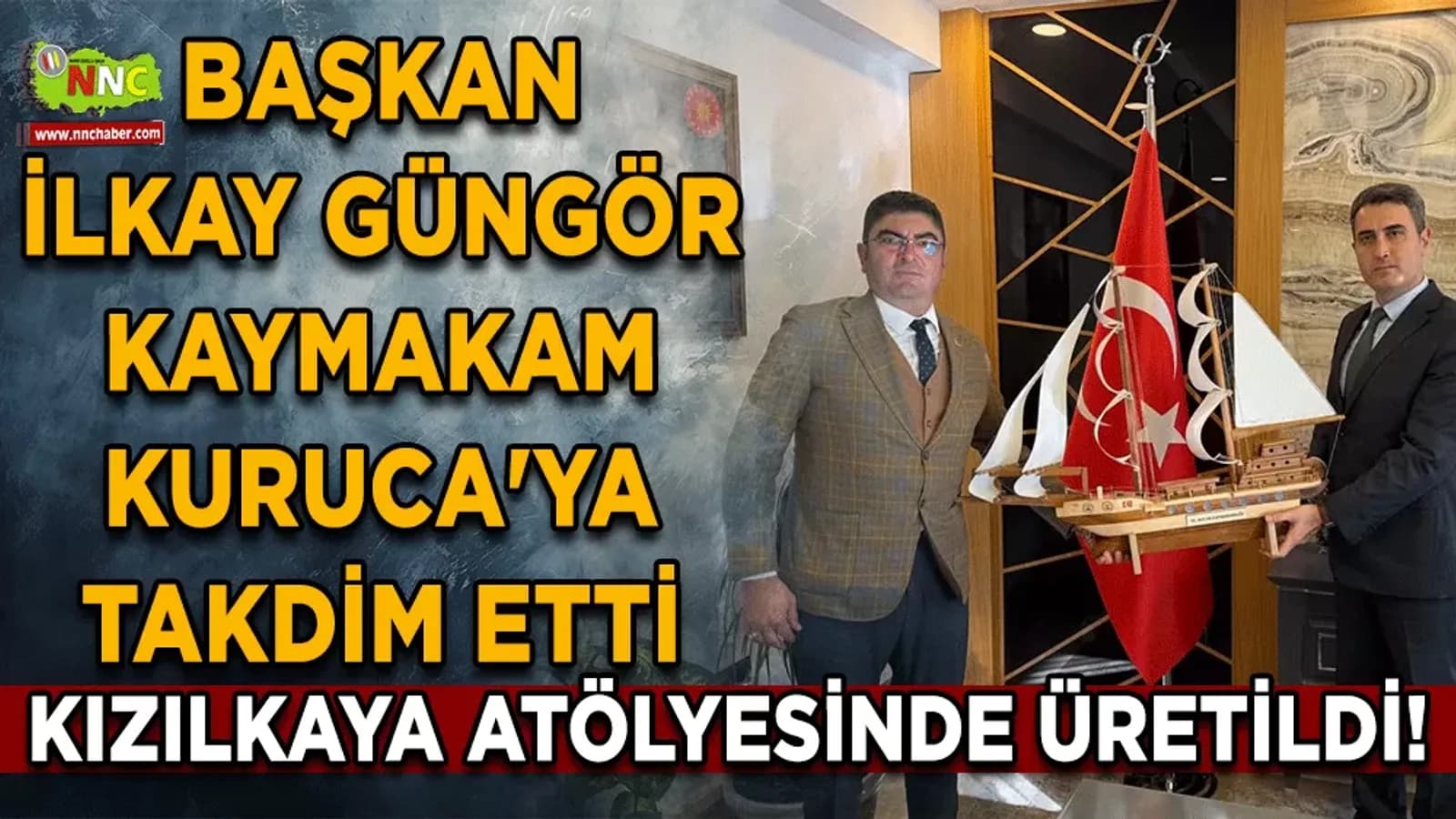 Kızılkaya atölyesinde üretildi! Başkan Güngör Kaymakam Kuruca'ya takdim etti
